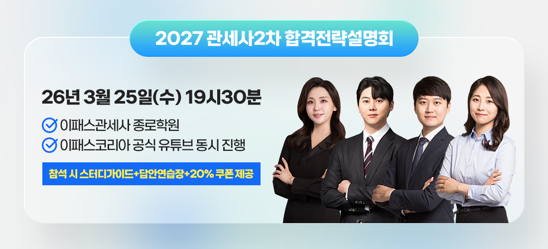 학원 : 서울특별시 종로구 청계천로 35, 6층(관정빌딩) 이패스고시학원 (등록번호 : 제3027호)